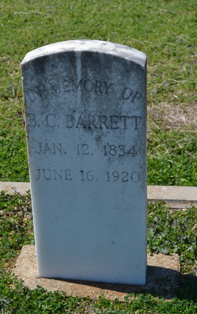 RESOLUTIONS-OF-RESPECTTo-the-Worshipful-Master-Warden-and-Brethren-of-San-Andres-Lodge-A-F-A-M-No-170-Cameron-TexasWe-your-committee-appointed-to-draft-resolutions-upon-the-death-of-Brother-B-C-Barrett-beg-to-submit-the-followingBrother-Barrett-was-a-native-of-Alabama-but-came-to-Texas-prior-to-the-civil-war-and-was-a-soldier-of-the-Confederacy-from-June-17th-1862-until-the-close-of-the-strife-He-left-his-home-for-the-service-the-day-his-first-child-Brother-John-W-Barrett-was-born-and-made-a-splendid-record-in-the-armyHe-was-a-pioneer-settler-in-the-western-portion-of-Milam-county-and-lived-to-see-the-wild-treeless-prairies-converted-into-rich-fertile-fieldsThough-not-intolerant-yet-he-was-a-man-of-conviction-and-when-he-reached-a-conclusion-after-due-consideration-his-mind-was-fixed-He-was-strong-in-his-belief-of-right-over-wrongDeath-claimed-him-June-1516-at-the-ripe-old-age-of-86-while-living-with-a-daughter-at-Hempstead-and-his-remains-were-buried-by-the-Craft-June-17-at-North-Elm-Cemetery-in-the-community-where-he-had-lived-many-years-and-where-two-wives-and-other-loved-ones-had-preceded-himTherefore-be-it-resolved1-That-the-state-has-lost-an-honored-and-useful-citizen-and-the-Craft-a-devoted-member2-That-while-we-feel-the-loss-our-Craft-has-sustained-yet-we-bow-in-humble-submission-to-the-will-of-Him-who-doeth-all-things-well3-That-we-extend-to-the-family-our-heartfelt-sympathy-and-commend-them-to-the-God-of-all-grace-and-consolation4-That-a-page-of-the-minutes-be-set-apart-for-these-resolutions-and-a-copy-be-sent-to-the-bereaved-familyFraternally-submittedJeff-T-Kemp-J-C-Joseph-John-Watson-Committee-The-Cameron-Herald-21-Oct-1920