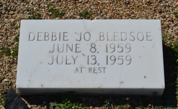 Funeral services were held for Debbie Jo Bledsoe, age 2 months, Tuesday at 3 p. m. from the First Baptist Church in Cameron with Rev. Aubrey F. Russell officiating. Burial was in North Elm Cemetery.