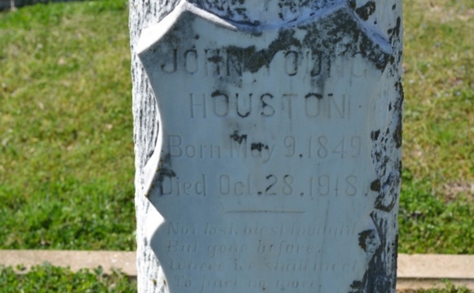 - Obituary: DEATH OF PIONEER The death of J. Y. Houston occurred last Monday afternoon near his home in the North Elm Community, deceased being a victim of heart trouble. Mr. Houston had been complaining a little for several days and Monday afternoon he left the house to go out and cut some wood, a short distance from the house, but did not return as soon as his wife thought he should. Mrs. Houston made investigation and found him dead. J. Y. Houston was 70 years of age and had lived in Milam County for 35 years. He was a most highly respected citizen and a man whom everybody liked. Besides his wife the deceased is survived by seven living children; there is also one son dead. They are: Will H. Houston of North Elm, Walter Houston of Lott, Mrs. Della Crook of Jones Prairie, Mrs. Minnie Russell of North Elm, Miss Viola and Charley Houston who live at home and Sam Houston of this city. The funeral was held Tuesday afternoon at the North Elm Cemetery and interment made at the same place in the presence of a large crowd of relatives and loving friends that had come to pay respect to a useful and honored citizen, whose lifes work will ever be remembered for his good deeds. The Cameron Herald, 31 Oct 1918