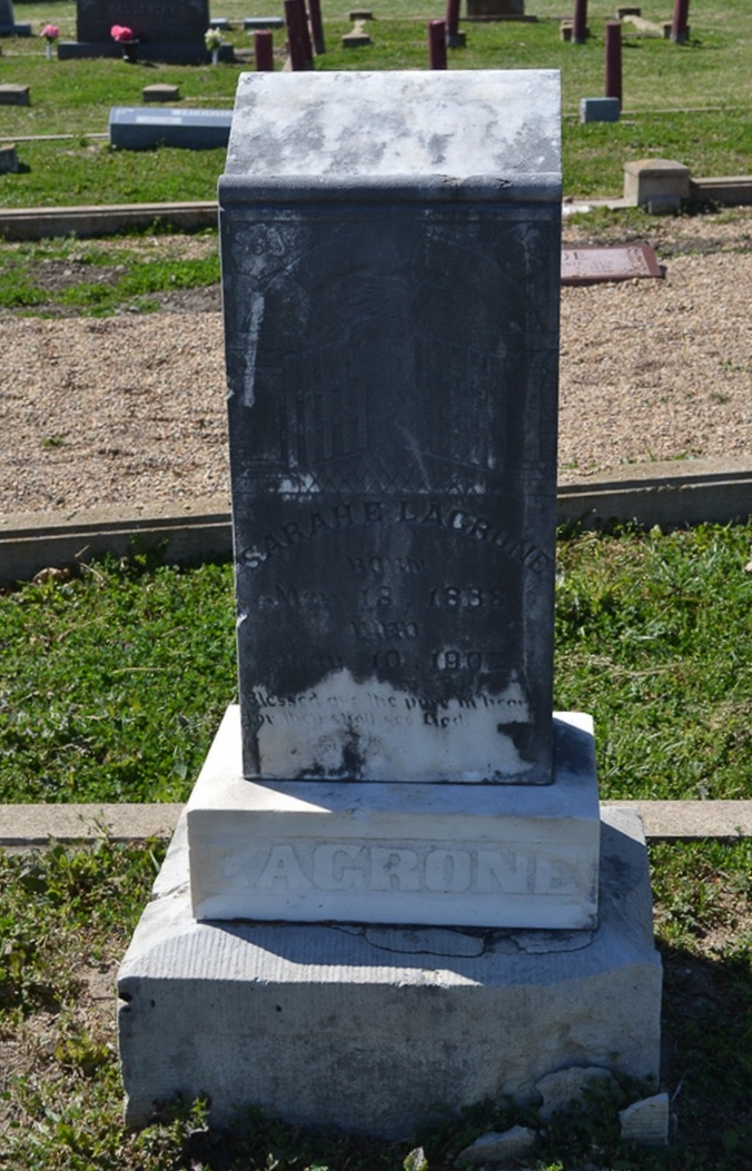 - Obituary: After a short illness the spirit of Mrs. Sarah Lagrone, of North Elm, took its flight to the world beyond, Saturday night, May 10. Mrs. Lagrone was born in the state of Alabama, but her father, Mr. Dow Shirley, moved to Texas when she was a child. Mrs. Lagrone was the oldest child of the family and was raised on North Elm. She was converted when quite young and joined the Baptist church, living a faithful Christian life until death. She leaves a daughter, Mrs. T. A. Casey, and one sister, Mrs. Ben Ellis, of Rising Star, to mourn their loss. May God comfort and bless the bereaved ones. A FRIEND. The Cameron Herald 15 May 1902