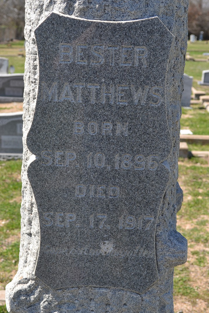 He is survived by his widow and two small sons. Also one brother, R. C. Matthews and one sister, Mrs. Bart Matthews.