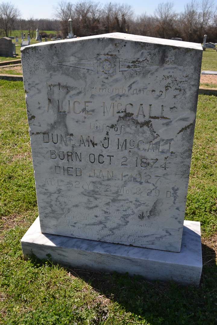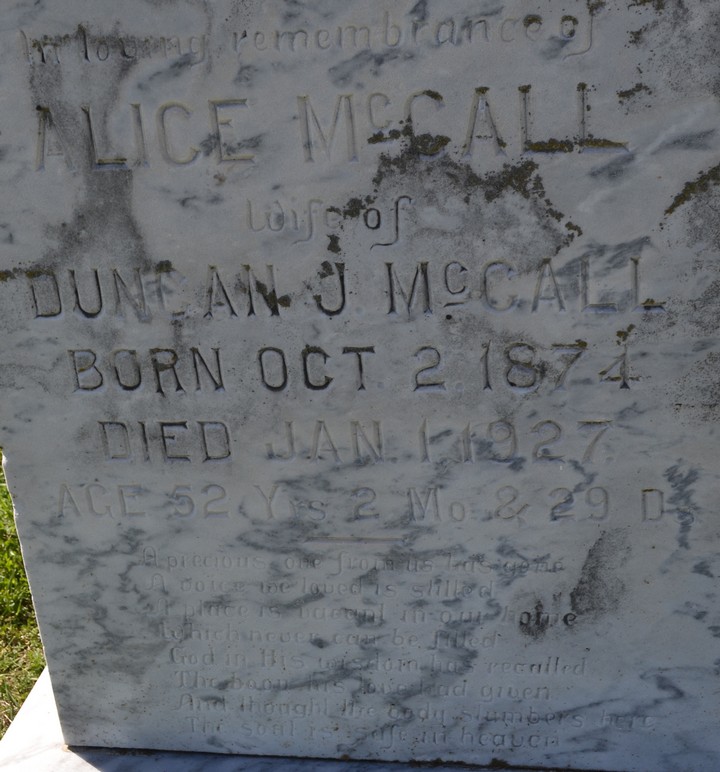 Mrs. Duncan McCall, 52, died suddenly at her home at Yarrelton Saturday, January 1, 1927 at 6:30 p. m.
