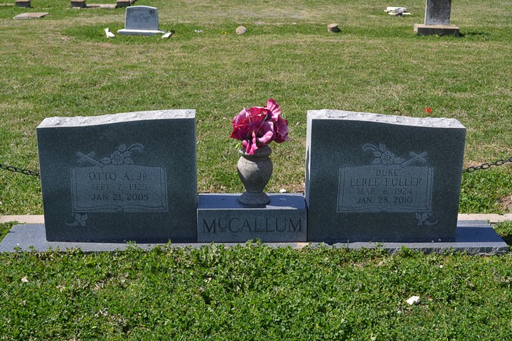 - Obituary: ELREE IVA “DUKEÃ¢â‚¬ï† MCCALLUM CAMERONâ€â€Services for Elree Iva “DukeÃ¢â‚¬ï† McCallum, 85, of Houston, formerly of Milam County, were held Sunday, Jan. 31, 2010, at North Elm Cemetery Pavilion near Yarrellton with Rev. Tim Cheatham officiating. Burial followed in North Elm Cemetery. Mrs. McCallum died Thursday, Jan. 28, in a Pearland nursing home. A retired homemaker, she was born March 6, 1924, in Milam County to Henry Lee and Myrtle Corine (Otts) Fuller. She married Otto McCallum and he preceded her in death. Survivors include her children, Ricky Young, Bennie Lee Morrow and Linda Sue Burkhalter; also, several nieces and nephews. Rockdale Reporter, 4 Feb 2010