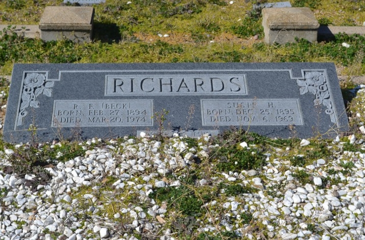 - Obituary: ROBERT FRANKLIN RICHARDS Robert Franklin Richards, 80, died in Bryan. He had lived in Bryan for 15 years, retired from Dow Chemical Co. at Freeport. He was a farmer, and owned the Walkie T. [Wokaty?] Grocery store in the North Elm community in the 1920s and 1930s. He was married to Miss Susie Howard in Yarrellton on November 22, 1914. Funeral service was held March 22 at the Callaway-Jones Funeral Home, the Rev. W. A. McDonald officiating. Burial was in the North Elm Cemetery near Cameron. Surviving are a daughter, Mrs. Dick Hughes of Bryan; two sons, A. J. Richards of Bryan and Elmer Ray Richards also of Bryan; four grandchildren and four great grandchildren; two sisters, Mrs. Thurman Donaldson of Bryan and Mrs. Grady Allen of Cameron; an aunt, Mrs. George Richards of Cameron. The Cameron Herald, 28 Mar 1974