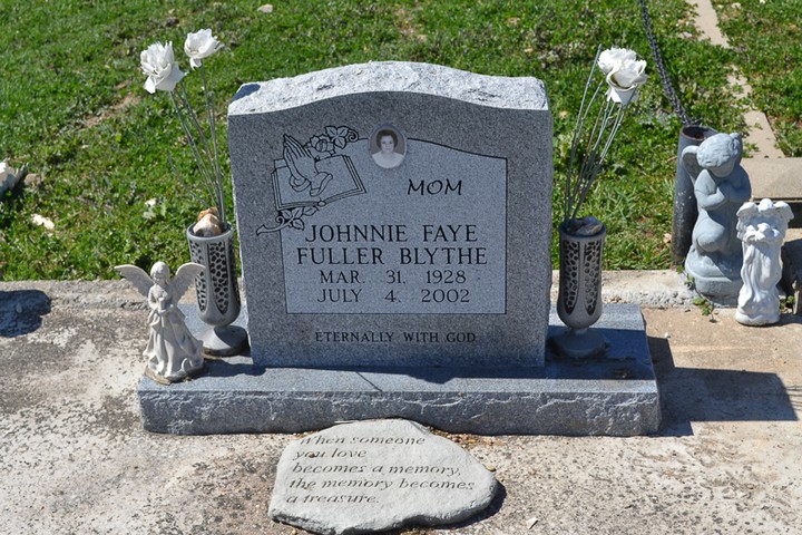 - Obituary: JOHNNIE FAYE BLYTHE CAMERONGraveside services for Johnnie Faye Blythe, 74 of Shepherd and formerly of Milam County were held at 2 p.m. Sunday, July 7, 2002 at North Elm Cemetery near Cameron with Rev. Time Cheatham officiating. She died Thursday at her home. Mrs. Blythe, a homemaker, was born March 31, 1928 in Milam County to Henry Lee and Myrtle Corine Otts Fuller. Surviving are: Son, Gary Blythe of Shepherd; two sisters, Lorene Laird of Pearland and Iva McCallum of Houston; several nieces and nephews Rockdale Reporter, 11 July 2002