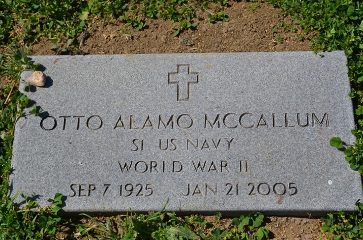 - Obituary: OTTO ALAMO MCCALLUM Otto Alamo McCallum, 79 of Houston died Jan. 21 at his home. Graveside funeral services were held Jan. 24 at North Elm Cemetery near Cameron with the Rev. Tim Cheatham officiating. McCallum, a retired body shop foreman, was born Sept. 7, 1925 in Arlington to Otto A. and Mattie Elizabeth (Baker) McCallum. He married Iva Elree Fuller June 16, 1973. He was a U.S. Navy veteran of WWII and a life member of the Veterans of Foreign Wars. He was preceded in death by a brother, Maurice McCallum and sisters, Vera Barber and Annie Lea Dupris. Survivors include his wife, Iva McCallum of Houston and a sister Mary Delling, also of Houston. The Cameron Herald, 27 Jan 2005